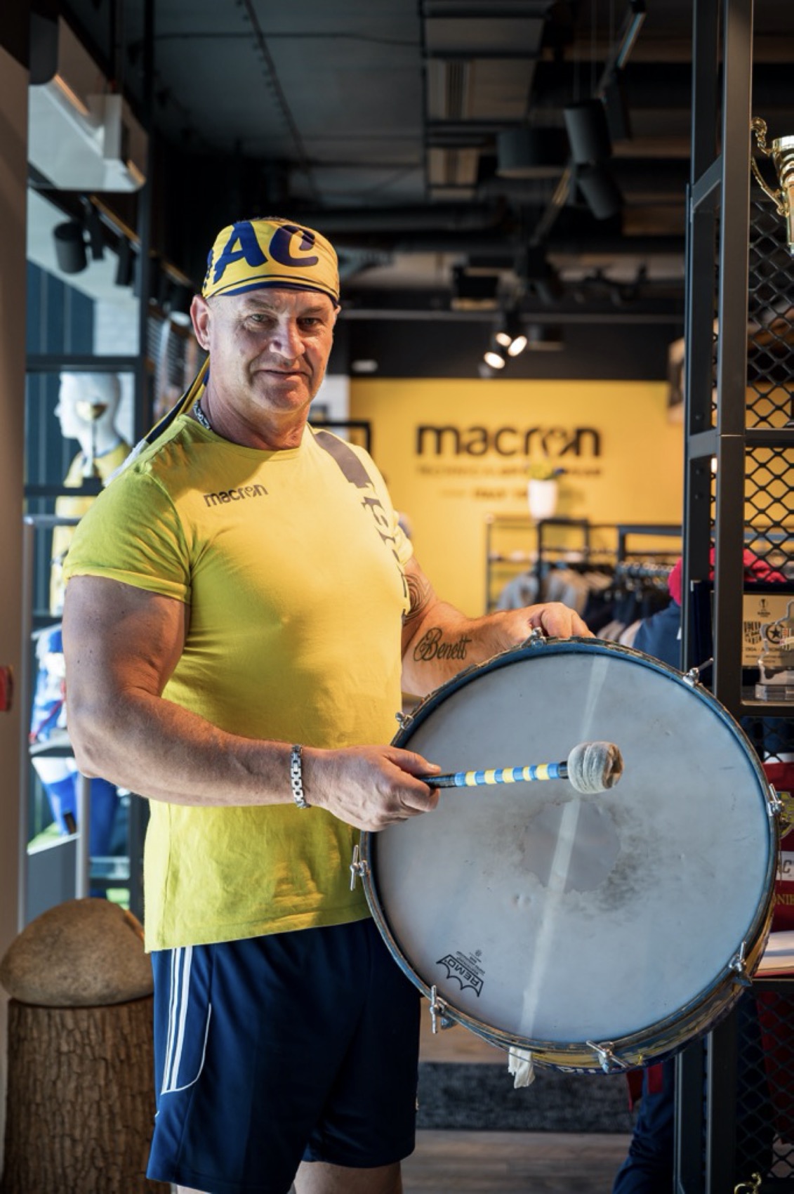 Az igazat megvallva, ennek korábban nem volt tradíciója mifelénk. Úgy adtuk tovább és úgy vonzottuk be körénk a sokaságot, hogy közben mi is csak tanultuk a módját. Ellestük másoktól, hogy kell, aztán ösztönösen utánoztuk őket, míg ki nem alakult a saját arculatunk. Magyarul énekelünk, az elnevezés viszont nemzetközi lett, mert az ultráknál ez a szokás: Yellow Blue Supporters. Ez még az a bizonyos Kása Nándi-féle YBS volt! A kápó előénekelt, a tábor pedig követte őt. Amikor 2008-ban Tóth Roland, vagyis Otelló először felmászott a kerítésre, háttal a pályának, valami olyanba kezdett, amit előtte még soha senki nem csinált mifelénk. A DAC ezt megelőzően hosszú évekig mélyálomban tengődött, de abban az esztendőben egy meccs is elég volt hozzá, hogy azonnal felocsúdjon. Azon a meccsen már a nemzeti zászlót sem adtuk! Hirtelen öt-hat busz telt meg az idegenbeli túrákra.