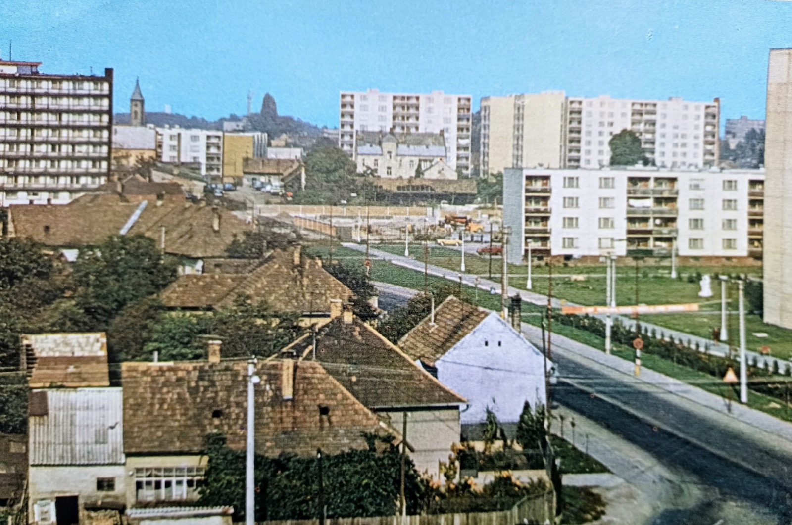 Most viszont jöjjön egy kis helytörténet. A dunaszerdahelyi Fő utca ezen része a hetvenes évek elején még teljesen másképp nézett ki, az utca mindkét oldalán családi házak álltak. Komárom irányába nézve aztán a bal oldali házsor mögött 1973–1978 között felépült a Keleti lakótelep, miközben az említett házsort az utolsó tégláig elbontották, hogy ne „csúfítsa” a szocialista városképet. Ezt követte az utca jobb oldala, ahol viszont 1982-től előbb lebontásra került a házsor, hogy Közép-lakótelep fantázianév alatt helyet adjon az 1985-ben Neratovicei téri lakótelepre keresztelt blokkoknak.
