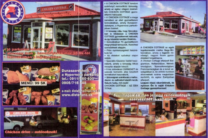 A Chicken Cottage szinte egész világot behálózó, a mai napig létező gyorsétteremlánc, amely anno Szlovákiában 15 üzemegység megnyitását tervezte franchise szerződések alapján. Közülük egyet városunkban, a Galántai úton. „Chicken Cottage – Az ízek titkai” – ezzel a szlogennel csalogatta vendégeit. Története azonban nem tartott sokáig. Üzemeltetőjét, a dunaszerdahelyi székhelyű Chicken Cottage Slovakia Kft.-t 2003-ban alapították, de 2006-ban már törölték a cégjegyzékből.