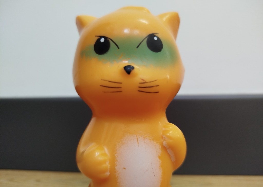 Maradjunk a szárnyasoknál. Szívemnek különösen kedves volt Büdimadi, a „minőségi” műanyagból készült galamb. Minden madarak e legunalmasabbika, mint már nyilván kitaláltátok, átható uretánszaga után kapta nevét, ám ez engem akkoriban – szüleimmel ellentétben – kevéssé zavart. Így Büdimadi hosszú karriert futott be, s talán fennmaradt volna az utókornak is, ha anyukám nem elégeli meg egyre áthatóbb aromáját, s hajítja a kukába egy délután, mikor figyelmem épp ellankadt. Szüleim házának megbecsült múzeumi tárgya maradt azonban a mérges tekintetű, boxolóállásban hepciáskodó Harcica. Na jó, nem volt ilyen kreatív neve, egyszerűen Boxoló Cicának hívtuk e sípoló kandúrt, akie megelmékezéshez illusztrációként szolgál.