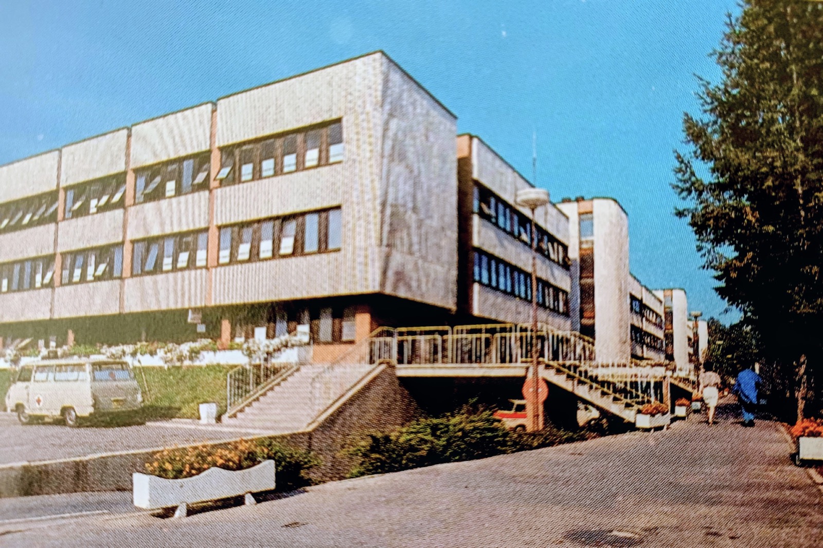 Ez a kép a „Kórház a város szélén” c. népszerű csehszlovák sorozatból is lehetne, de a Škoda 1203-as a JÉV által épített dunaszerdahelyi rendelőintézet előtt áll