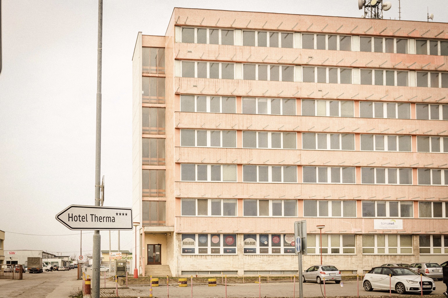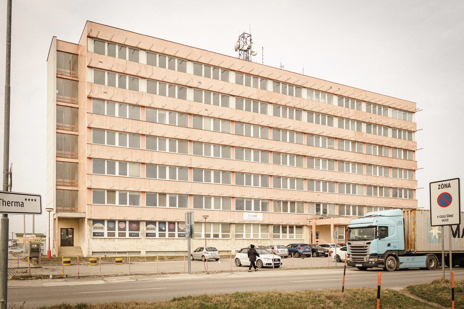 Az épület tetején vörös csillag helyett adótorony áll bázisállomással Berci képe: Fotó2.jpg