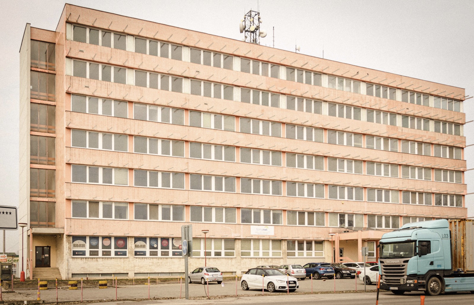 Az épület tetején vörös csillag helyett adótorony áll bázisállomással Berci képe: Fotó2.jpg