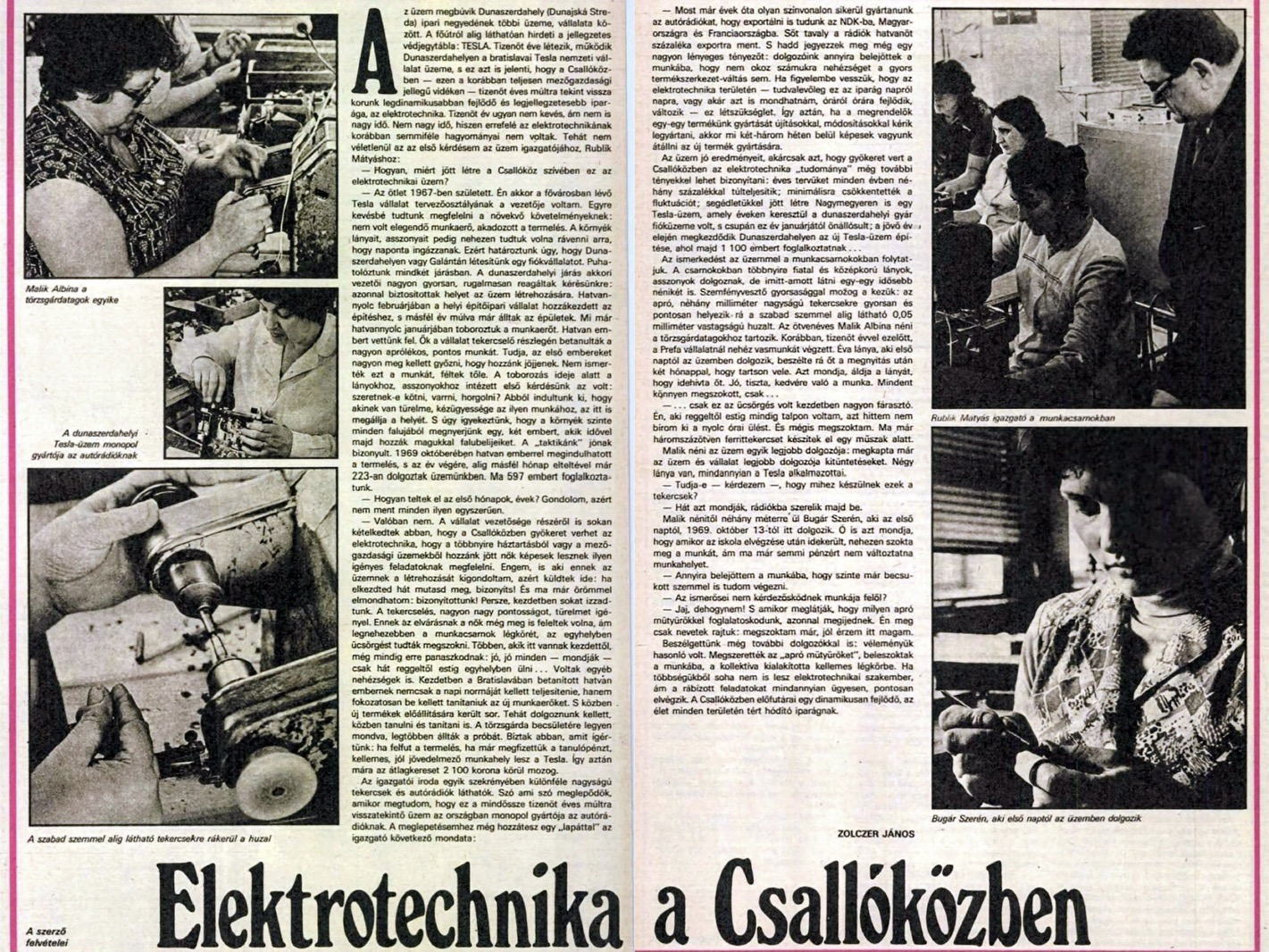 „Az üzem címét hiába keressük a telefonkönyvben, sokan azt se tudják, hogy létezik. Joggal nevezhetjük a Dunaszerdahelyi járás legfiatalabb üzemének, nemcsak azért, mert a legújabb, hanem mert az itt dolgozó nők átlagos életkora 20 év. Az üzemrészleg Nyugat-Szlovákia iparosítási tervének keretében született. A járás illetékes funkcionáriusai mindent elkövettek, hogy munkaalkalmat teremtsenek a nők számára, így aztán 1969 februárjában megindult a pozsonyi TESLA üzem és Dunaszerdahely között az üzemi autóbuszjárat, amely naponta 90 munkásnőt szállított a gyárba. Itt tanították meg őket a tranzisztoros rádiók apró alkatrészeinek gyártására. Nyolc hónapig vitte-hozta az autóbusz azokat az alkalmazottakat, akik az egy hónapos próbaidő után a munkafeltételeknek megfeleltek…” – Nő, 1969. 12. 14.
